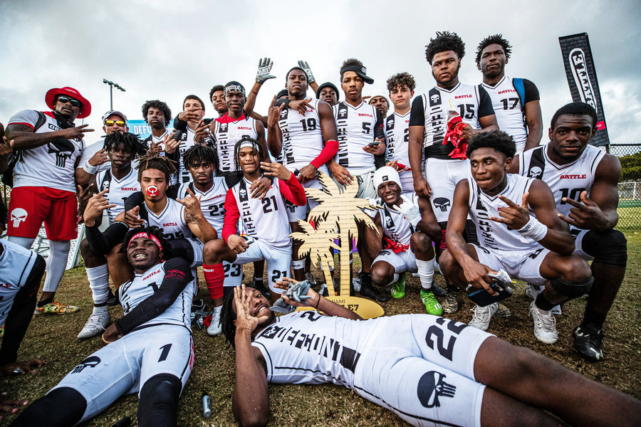 At battle sports, there is no offseason. our athletes are always ready for gametime whether if its during football season or training in the offseason. 7v7 is a great way for players to showcase and level up their skills all year long. If you are feeling like you need an equipment refresh, or just want some cool new gear, check out battle sports football equipment such as football gloves, football mouthguards, football helmets, football arm sleeves, football socks, compression gear, and more to keep you protected and maximizing your performance on the field. if you need to fill your closet with more performance gear, battle sports has the best sportswear for adults and kids from t-shirts and hoodies, to joggers and shorts, we have it all in variety of colors and sizes.