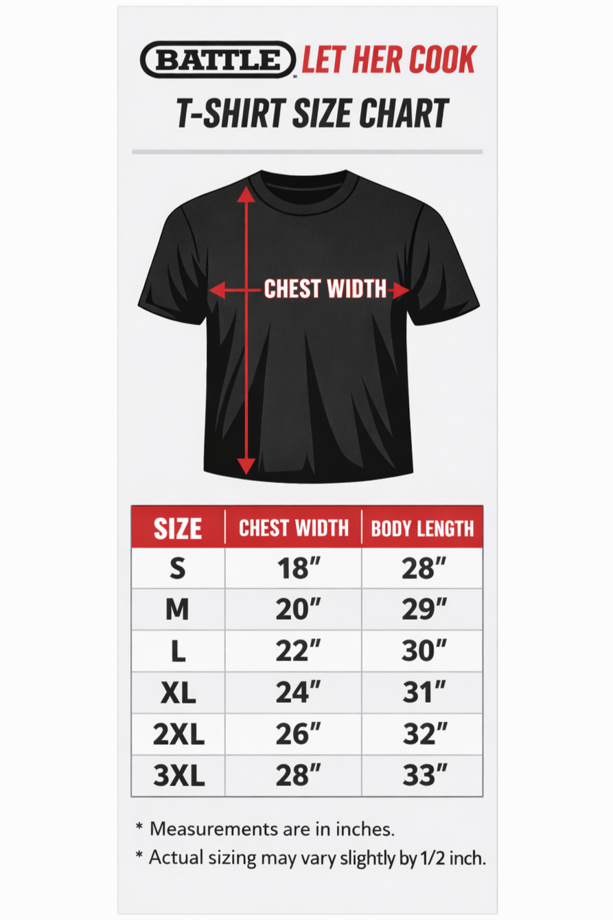 - Bold “Let Her Cook” front graphic with Battle logo branding