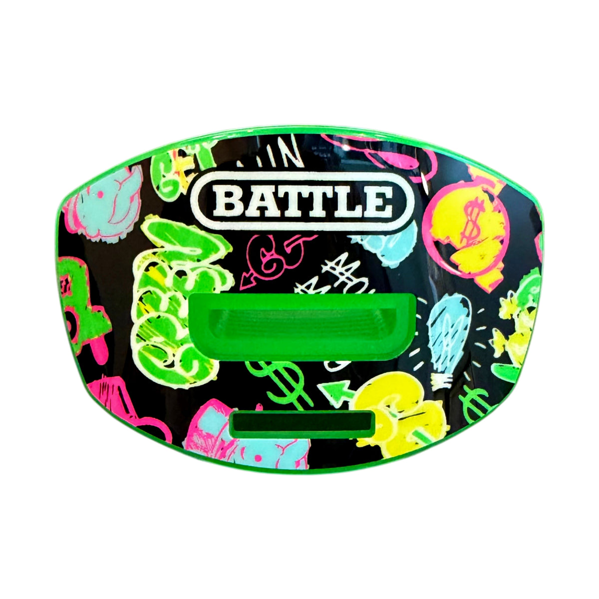 The Battle Monopoly Street Art Speed X Football Mouthguard is built for players who want performance, flexibility, and standout design in one piece of gear. With the strap attached, it provides the dependable connection preferred for tackle football. Remove the strap to switch into a lighter setup ideal for flag football, 7v7 leagues, or off-field training.